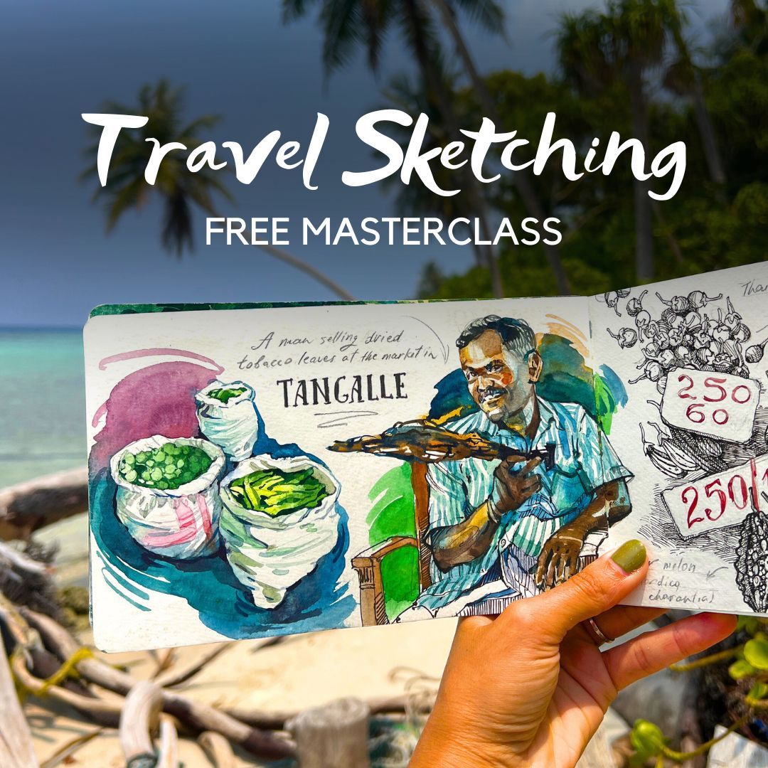Discover the essential supplies you need for sketching on the go, learn my 5 simple rules to stay consistent, and find out how to take your sketches to the next level. This free guide is your perfect start to building a confident and joyful travel sketching practice wherever you are.